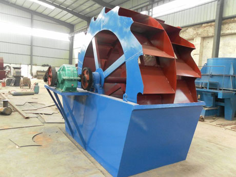 轮斗式洗砂机工作时,电极通过三角带、减速机、齿轮减速后带动叶轮缓慢转动,砂石有給料槽进入洗槽中,在叶轮的带动下翻滚,并互相研磨,出去覆盖在砂石表面的杂质,同时破坏包覆在砂粒的水汽层,以利于脱水;同时加水,形成强大水流,及时将杂质及比重小的义务带走,并从溢出口洗槽排出,完成清洗作用。干净的砂石由叶片带走,砂石从旋转的叶轮倒入出料槽,完成砂石的清洗作用。